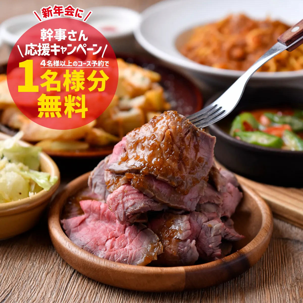 【自家製ローストビーフ食べ放題コース】4名様以上で1名様無料!3時間食べ飲み放題付7品★4400円