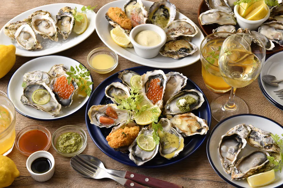 ぷりぷりの生牡蠣、香ばしく焼き上げた焼き牡蠣、サクサクの牡蠣フライが思う存分楽しめる贅沢な食べ放題プラン!新鮮な牡蠣の旨味が口いっぱいに広がり、生ビールをはじめとする全種類飲み放題付きで、みんなでワイワイ楽しむ贅沢時間を満喫しよう♪
