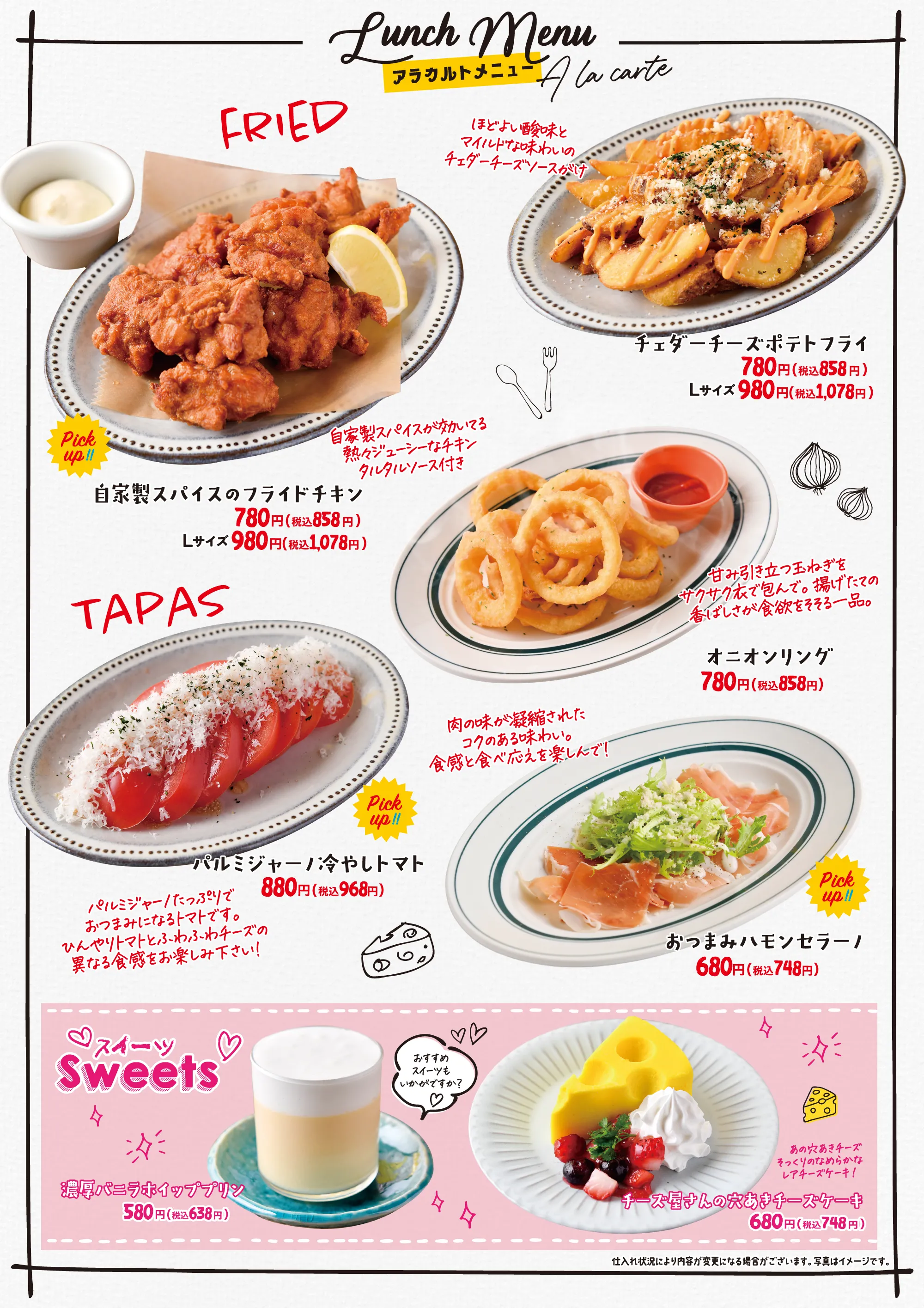 チーズと旨みの海に溺れる。 今話題の中毒系「溺れるスープスパ8種」に、溢れ出す濃厚チーズが自慢の「シカゴピザ3種」、さらに王道の美味しさが人気の「定番ピッツァ5種」がすべて食べ放題で楽しめる贅沢プラン!さらに、スープスパと相性抜群の「バゲット」、気軽につまめる「チェダーチーズポテトフライ」も食べ放題でご用意しております。気分に合わせて楽しめる幅広いラインナップはお腹いっぱい、大満足間違いなし!