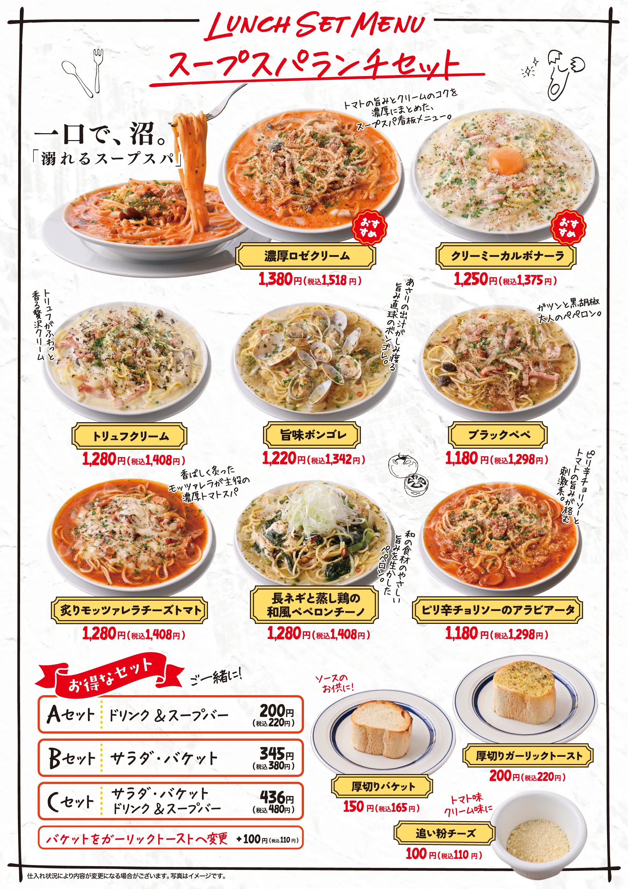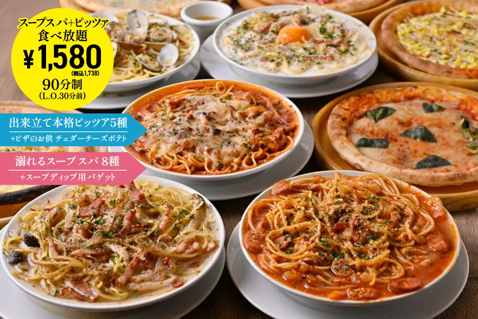 • 【溺れるスープスパ+定番ピッツア食べ放題】1738円
