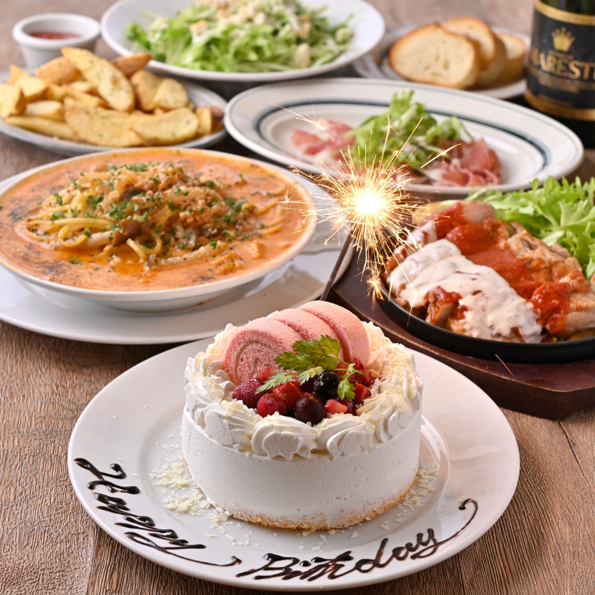 【アニバーサリーコース】ホールケーキ付!誕生日&記念日に◎3時間飲み放題付6品3850円