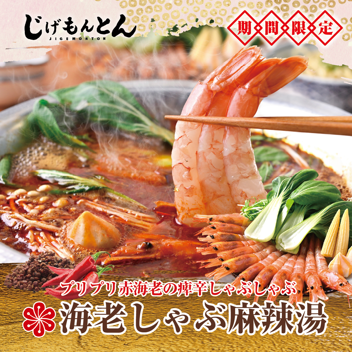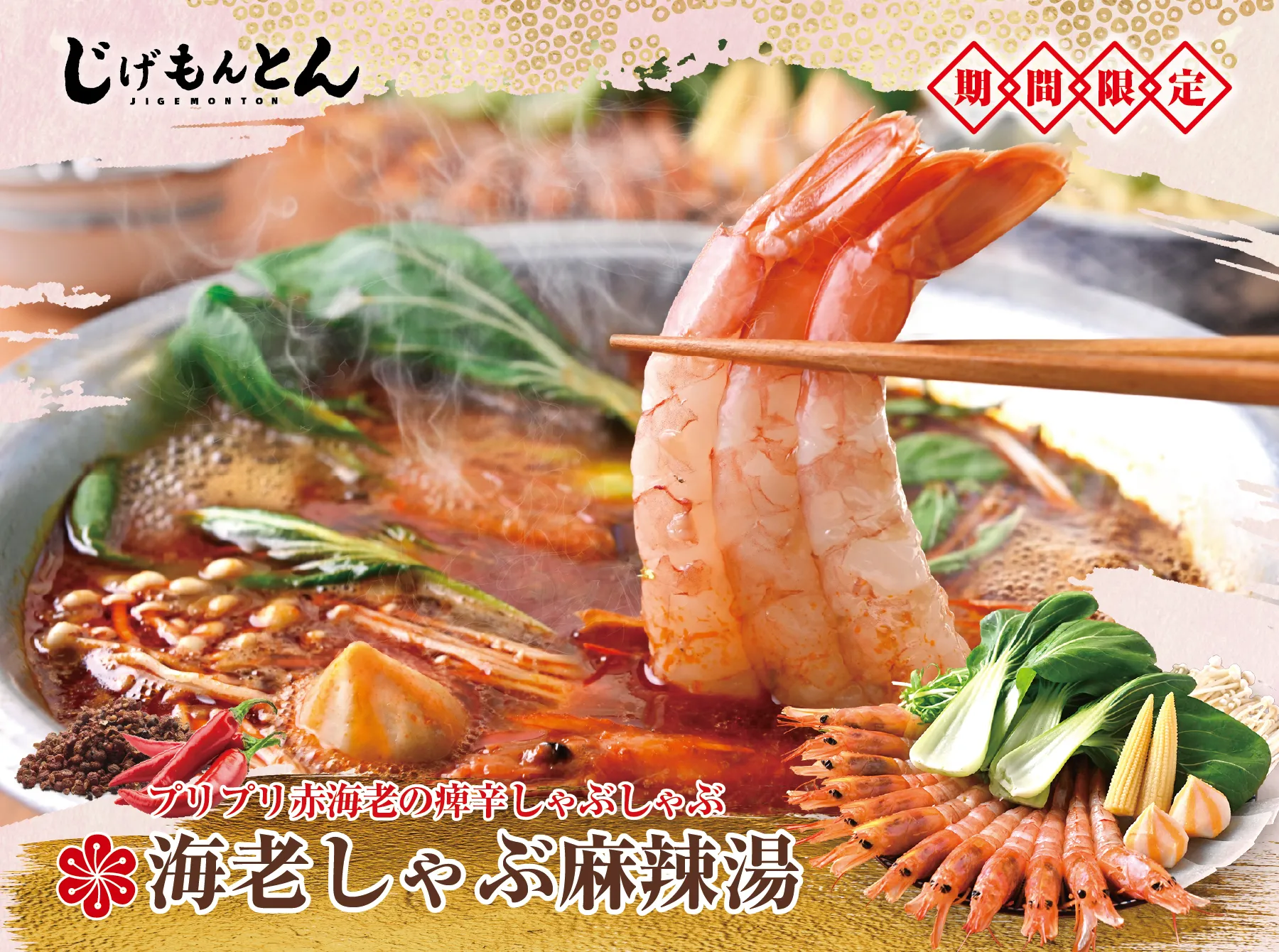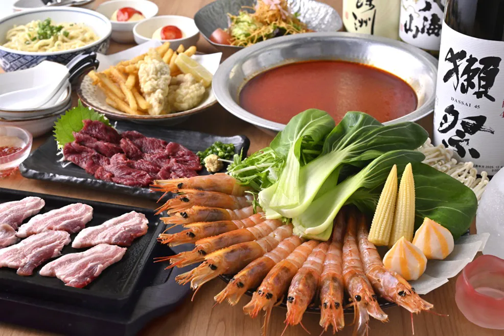 【海老しゃぶ麻辣湯コース】海老が主役の、贅沢麻辣!2時間飲み放題付7品6980円