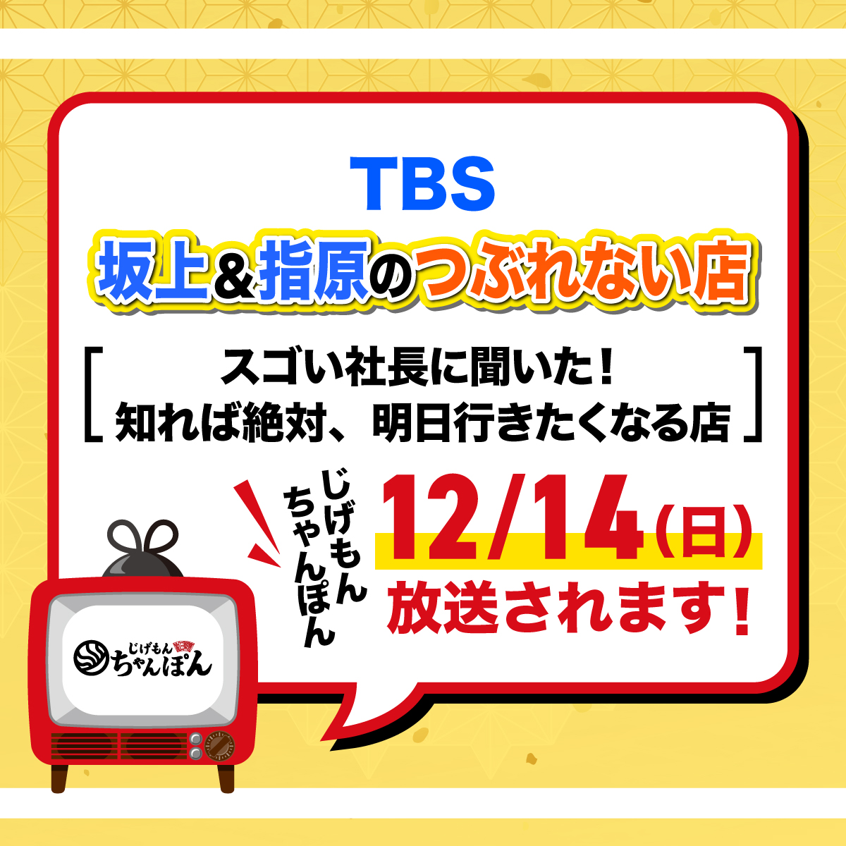 \📺️TBS『坂上&指原のつぶれない店』でじげもんちゃんぽんが放送されます!📺️/