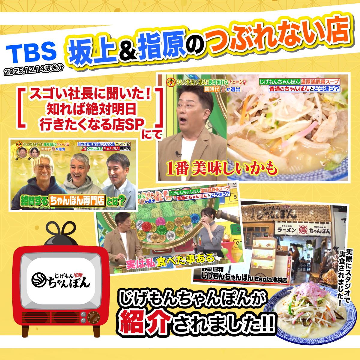 \📺️TBS『坂上&指原のつぶれない店』で放送されました!📺️/