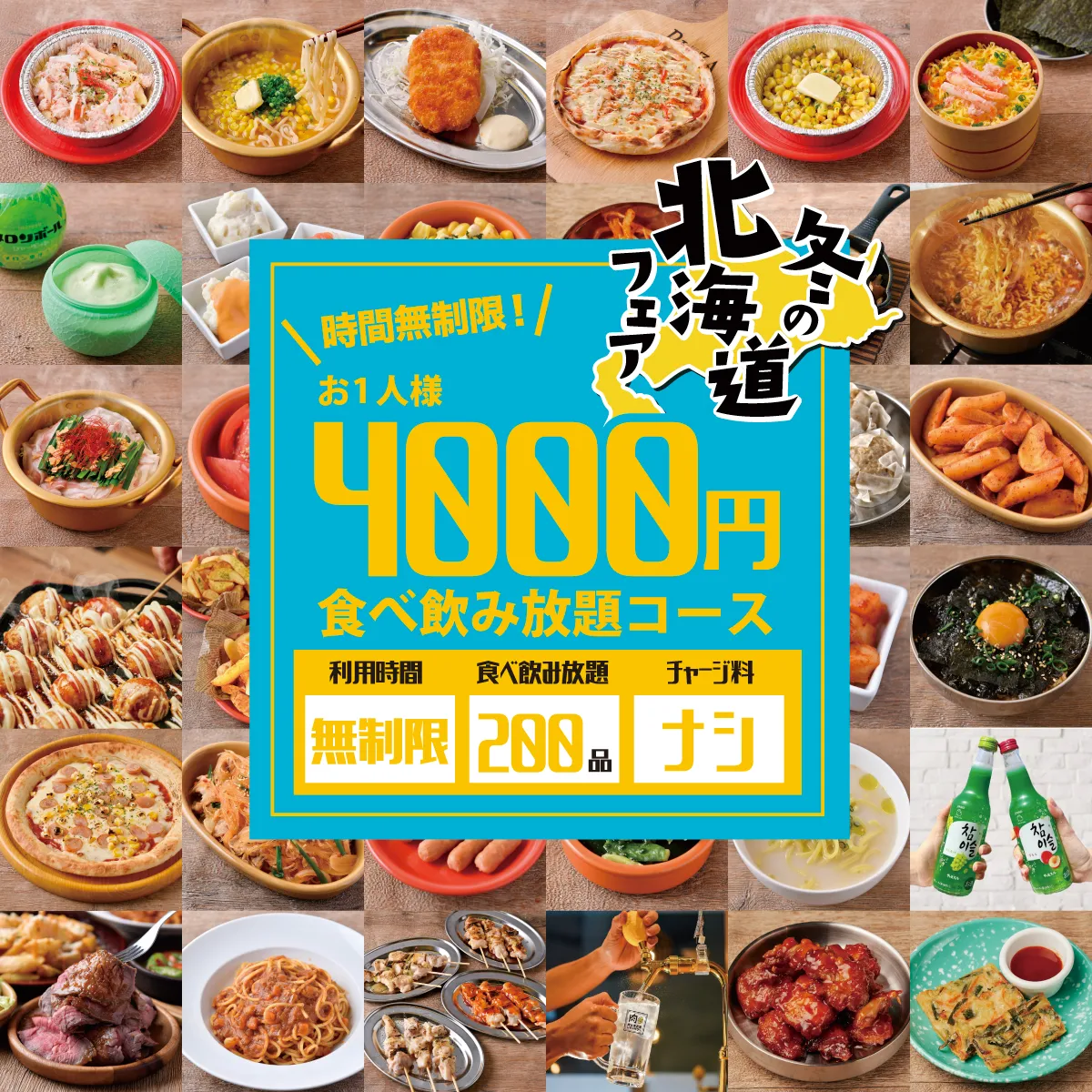 ★冬の北海道フェア対象★【時間無制限200品食べ放題&飲み放題プラン】4000円(税込4400円)