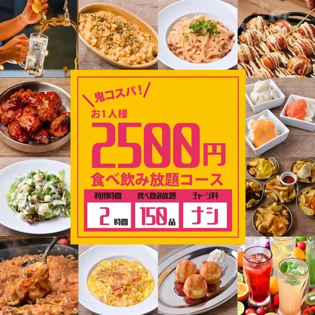 【2時間】150品食べ放題×飲み放題プラン2500円(税込2750円)