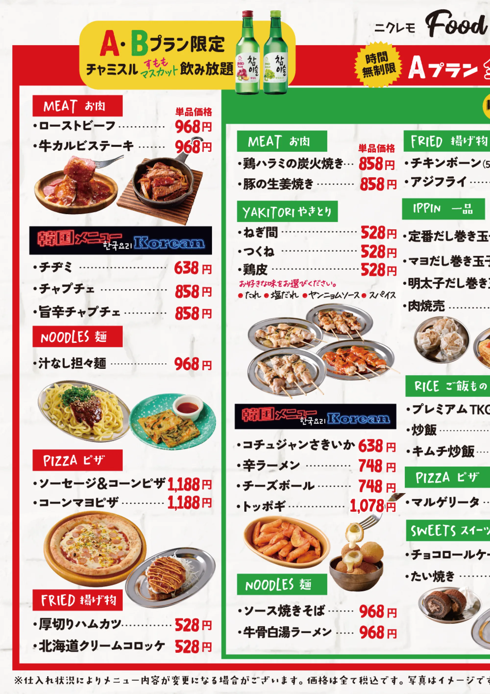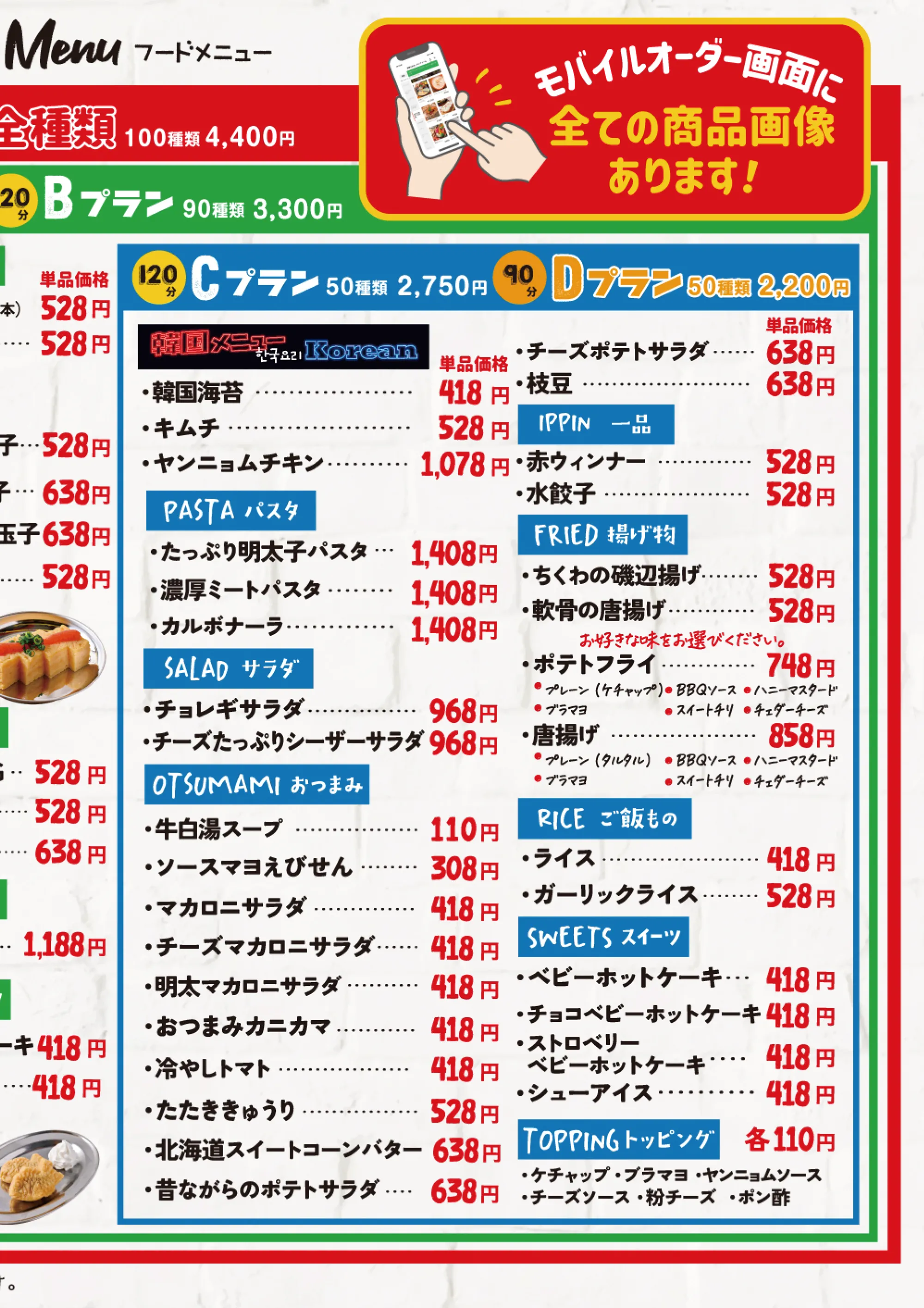 【1.5時間】150品食べ放題×飲み放題プラン2000円(税込2200円)