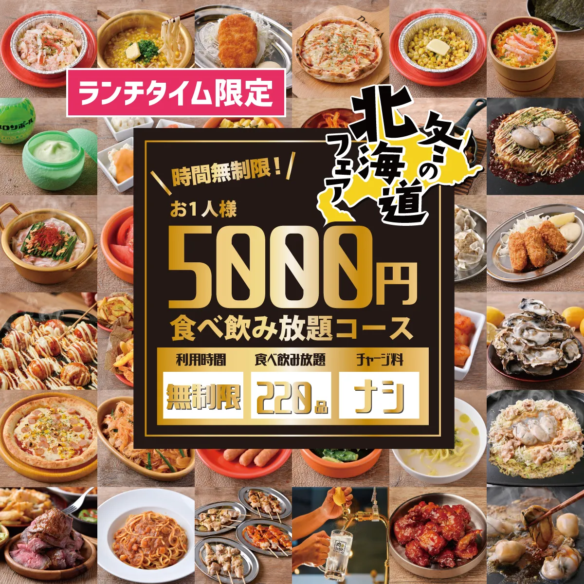 ◎LUNCH限定◎冬の北海道フェア対象!【時間無制限200品食べ放題&飲み放題プラン】3500円(税込3850円)